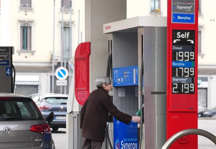 3月11日,在意大利米兰,市民在市中心一家加油站加油。受美国和以色列与伊朗军事冲突影响,国际油气价格近日飙升,欧洲多国油价攀升明显,加大欧洲民众生活成本压力。新华社记者 李京 摄