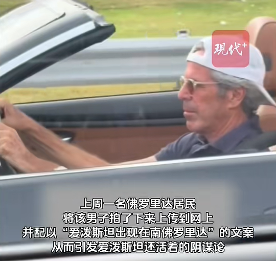 上周,一名叫作安德鲁·波西的佛罗里达居民看到这名男子开车四处转悠,于是将他拍了下来上传到网上,并配以“爱泼斯坦出现在南佛罗里达”的文案。帖子迅速走红,并引发了爱泼斯坦还活着的阴谋论。